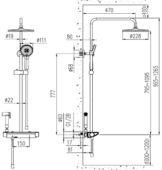 | Диаметр верхнего душа | Ø228мм | |
